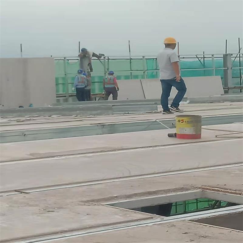 屋面板至少保证三点焊接与檩条或屋面结构连接,天沟板应保证四点焊接连接,墙板保证四点螺栓连接隐藏在板内的连接节点必须在施工过程中及时做好隐检记录。屋面宜采用结构找坡,坡度不宜小于3%。当屋面板平整度符合防水层铺设要求时,防水层可直接做在屋面板上。钢骨架轻型板在运输和安装过程中应防止碰撞,对因摩擦、碰撞导致的板局部损伤,安装完毕后应按设计要求进行修复。施工时不得在板上堆积材料或超重设备。当施工过程中有发生时,应采取有效保护措施。墙板应按顺序分层或分段安装,校正位置后方可固定其连接施工安装时,首先安装门窗洞口侧边的墙板,保证洞口尺寸要求。板缝施工前应将板缝内清理干净,在板缝中填塞背衬材料时保证背衬材料塞入板缝的深度。