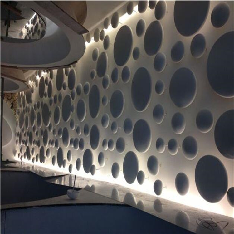 GRG造型适应于任何空间造型的塑造,酒店大堂,歌剧院的吊顶,以及办公空间的艺术割断,艺术背景墙,形象墙,GRG造型建材质地细腻,表面光洁度高,配以的模具可生产出陶瓷般质感的产品,相比较与普通石膏制品,GRG石膏制品无论是硬度,抗拉,抗折强度均优于普通石膏,其细腻程度也是普通石膏无法做到的。