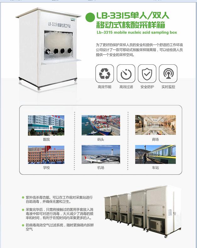 提升防控能力,青岛路博厂家推出单人,双人核酸采样工作站,有效的降低工作人员的感染风险。核酸采样仓的核酸采集方仓,里面是正压,同时它带有自带有消毒机构,带空调,医生可以很舒适地呆在里面,只要进行一级防护,跟病人进行物理隔绝,即可进行检测,这样每天大量的检测就不会过于疲乏。