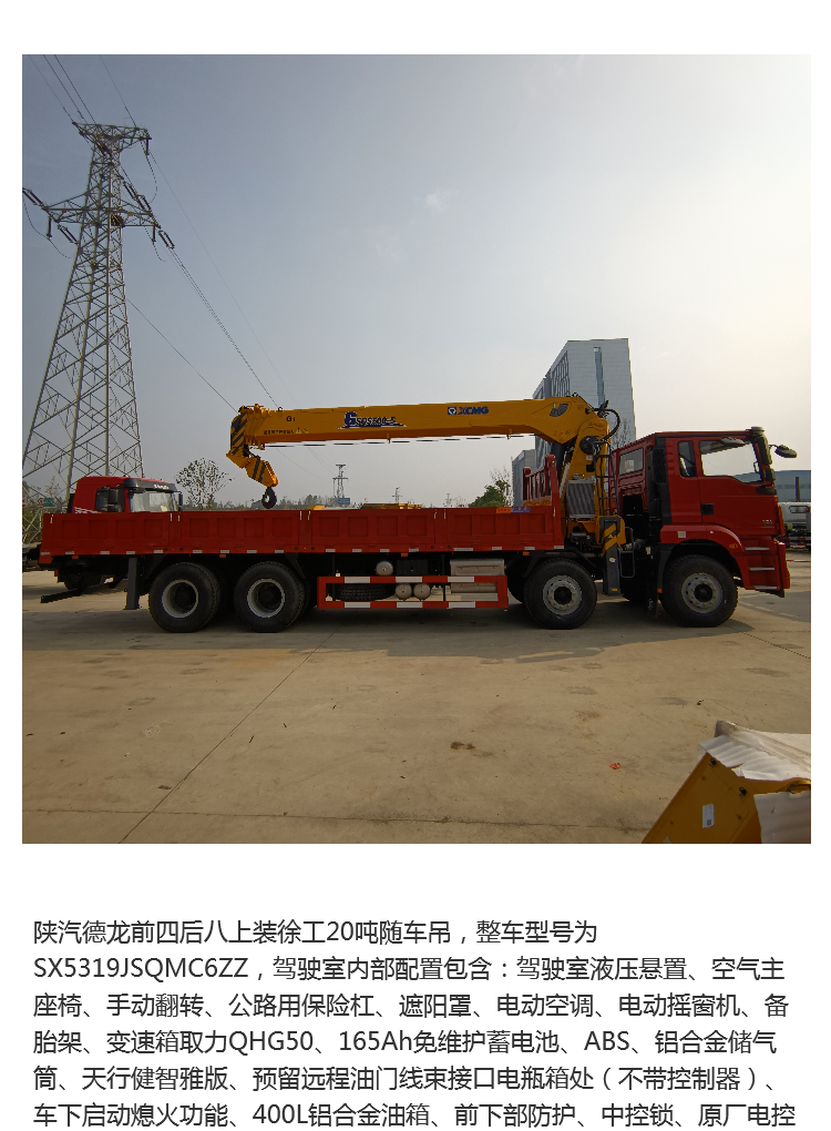 陕汽德龙M3000前四后八 徐工20吨随车吊 车厢8米6 SQS500