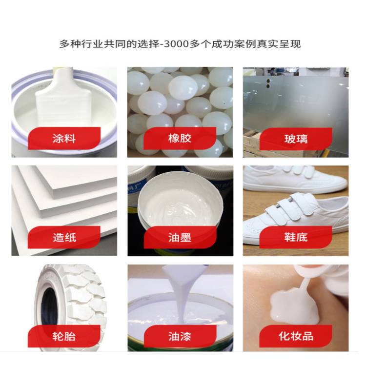 轮胎制造业、硅橡胶产业、涂料工业、新能源等领域 |