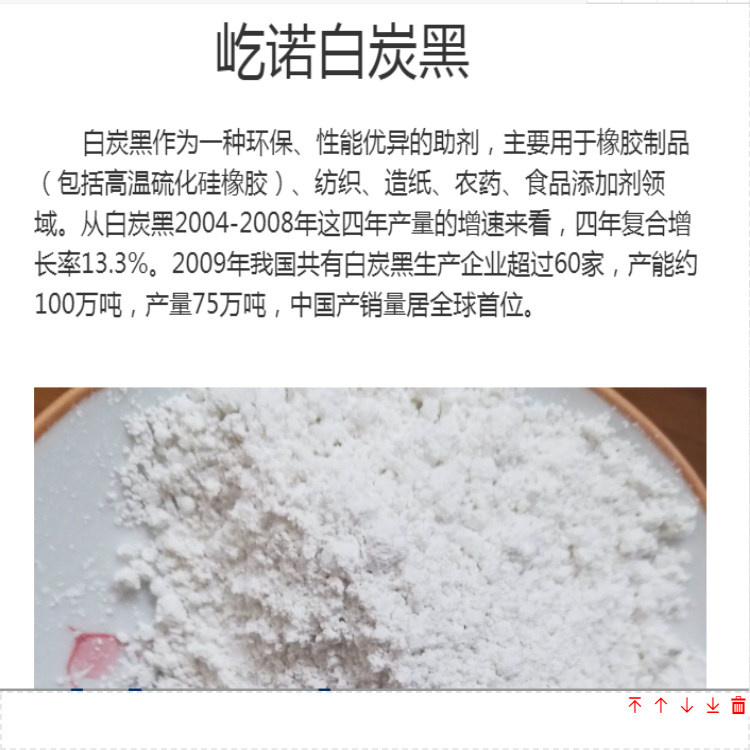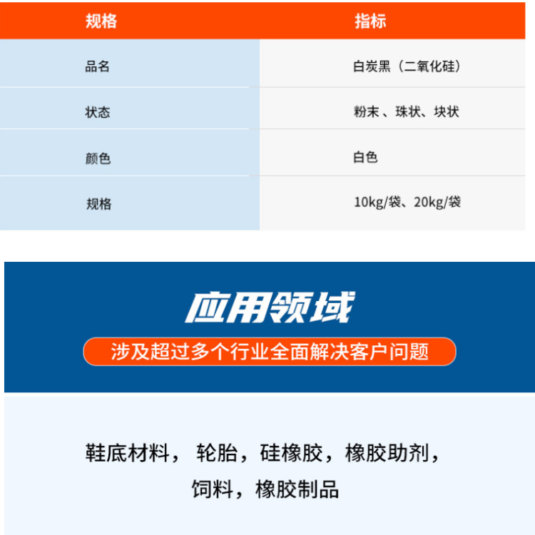 轮胎制造业、硅橡胶产业、涂料工业、新能源等领域 |