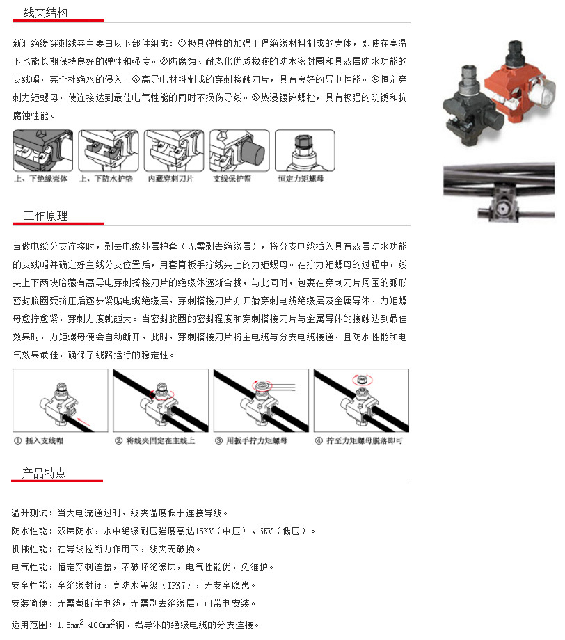 ④恒定穿刺力矩螺母,使连接达到理想电气性能的同时不损伤导线。