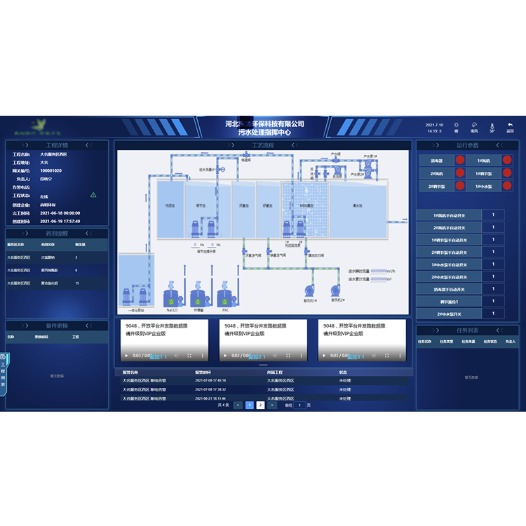 威泰普科技智慧泵站远程控制系统供货范围包括:高压配电柜、低压配电柜、自控PLC柜、中控上位机软、硬件、大屏显示、仪表控制箱、厂区照明、视屏监控、电缆桥架、电气施工接线、系统调试等。