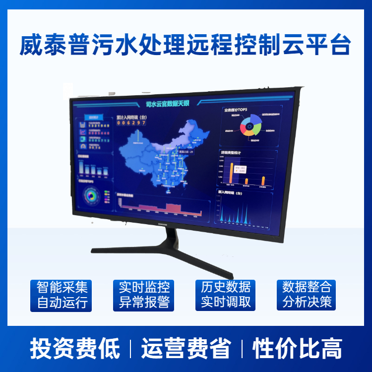 针对以上情况,威泰普科技有限公司研发的“司水云官污水处理智能控制云平台”系统,将物联网技术和新农村污水处理设备深度结合,通过对新农村污水处理设施远程控制、实时监测、数据采集、智能分析、集中反馈、加药、曝气等污水处理全过程的管理。使新农村污水处理的监管规范化、系统化、智能化、和清晰化,大幅提高监管的效率,可大大降低运营单位的管理成本。