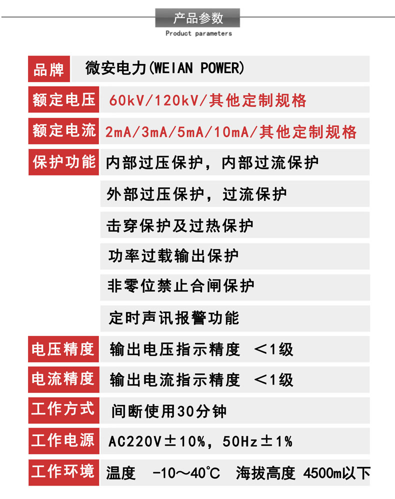2、ZGF系列直流高压发生器具有过压、过流、零压启动和故障保护功能,电压保护值可整定,显示直观
