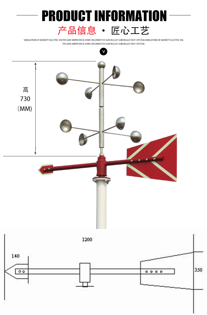 越翔风车式风向标 金属喷塑大标杆迎风旋转 指向准确