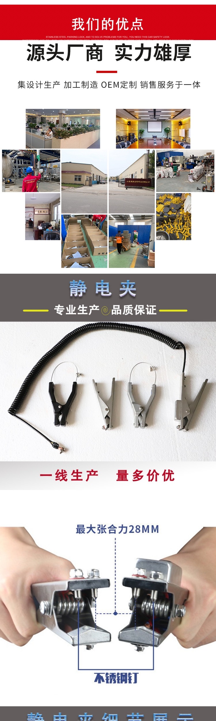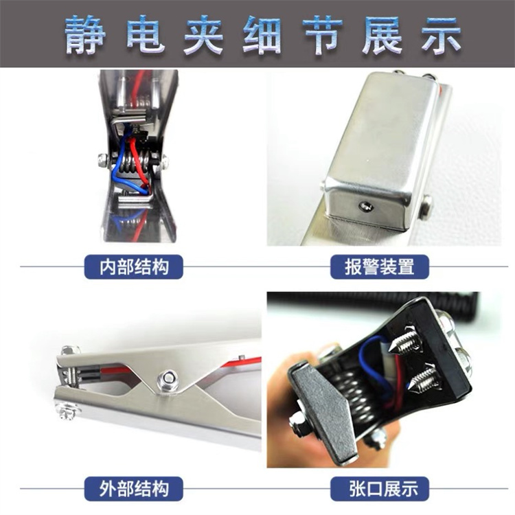 越翔安防 声光防爆静电夹 304不锈钢材质 断路闪光声音提示