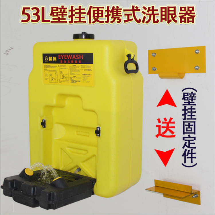 产品说明:容量53L,洗眼器喷头流量3.2L-3.6L每分钟,能提供15分钟以上不间断的眼部冲洗标准。