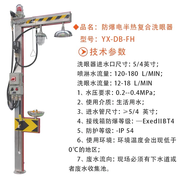 越翔安防 防爆电伴热洗眼器 紧急洗眼装置 恒温防冻款