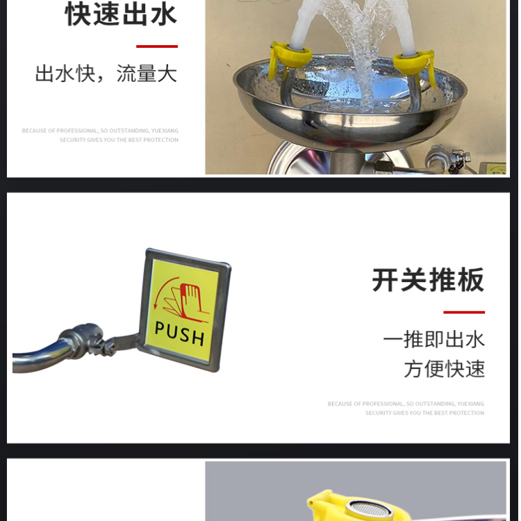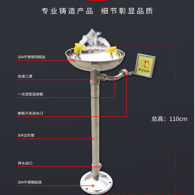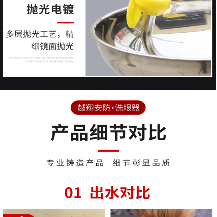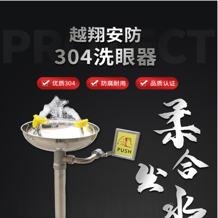 产品细节:洗眼喷头为高密度304不锈钢双层过滤网可过滤杂质,喷出的水呈气雾状、合抱、柔和、避免眼睛二次伤害。