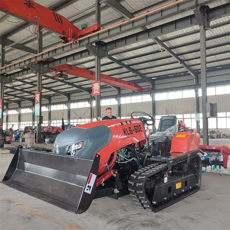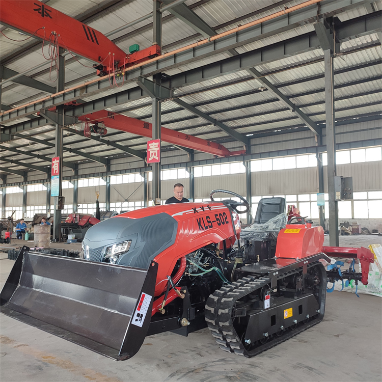 设计比轮式有更好的适应性,底盘低,稳定性好,履带附着系数大,可以有效抵抗倾斜和下坡的坡地。履带旋耕机属于全地形作业机械,具有原地转弯转向的机动性,爬坡和越野性能更强。