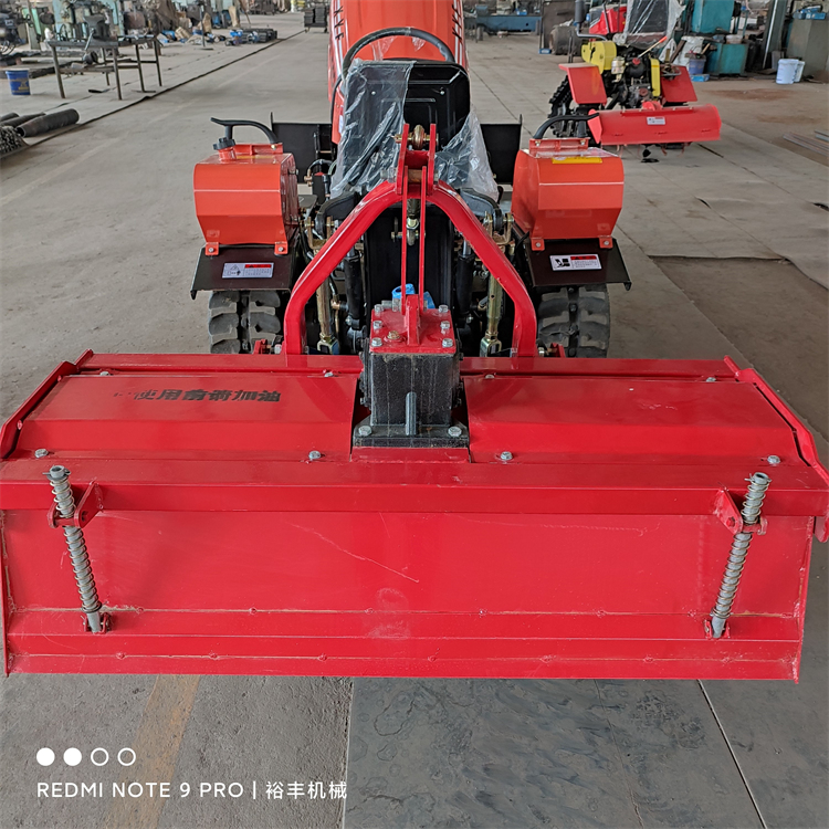设计比轮式有更好的适应性,底盘低,稳定性好,履带附着系数大,可以有效抵抗倾斜和下坡的坡地。履带旋耕机属于全地形作业机械,具有原地转弯转向的机动性,爬坡和越野性能更强。