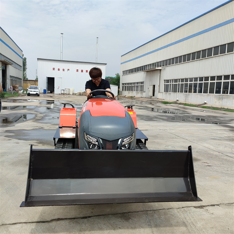 设计比轮式有更好的适应性,底盘低,稳定性好,履带附着系数大,可以有效抵抗倾斜和下坡的坡地。履带旋耕机属于全地形作业机械,具有原地转弯转向的机动性,爬坡和越野性能更强。
