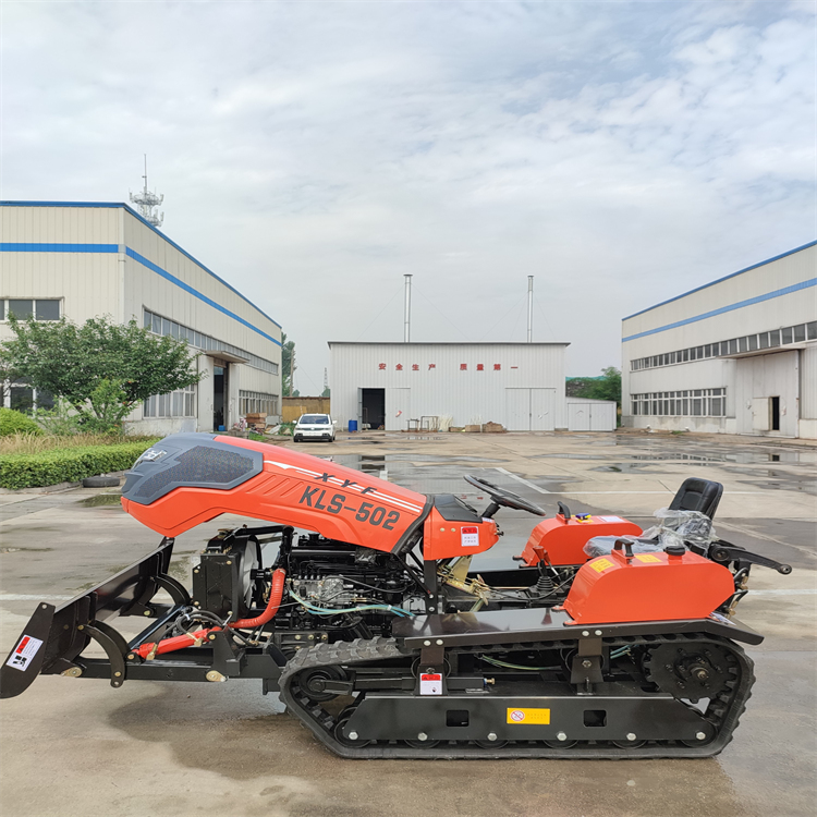 设计比轮式有更好的适应性,底盘低,稳定性好,履带附着系数大,可以有效抵抗倾斜和下坡的坡地。履带旋耕机属于全地形作业机械,具有原地转弯转向的机动性,爬坡和越野性能更强。
