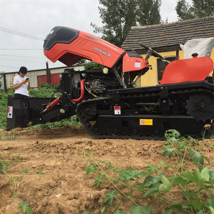 设计比轮式有更好的适应性,底盘低,稳定性好,履带附着系数大,可以有效抵抗倾斜和下坡的坡地。履带旋耕机属于全地形作业机械,具有原地转弯转向的机动性,爬坡和越野性能更强。