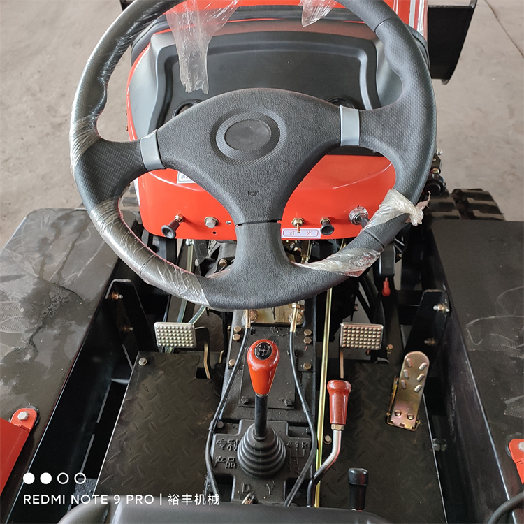 搭配动力50马力发动机。变速变速箱专利产品,性能可靠,前进档有四个档位带高低速,倒挡一个带高低速,共八个前进档,有空挡和倒挡。变速箱后输出有两个档位的转速,低速540转/min,高速720转/min。机器转向采用液压强制单边刹车转向,转向过程自带切断动力,能有效保护变速箱和刹车系统,使其更加经久耐用。机器带后输出,悬挂和强升强降,可以搭配轮式拖拉机农具。机身前面可选装推土铲,以及装载机铲斗,真正实现一机多用,农用工程两不误。