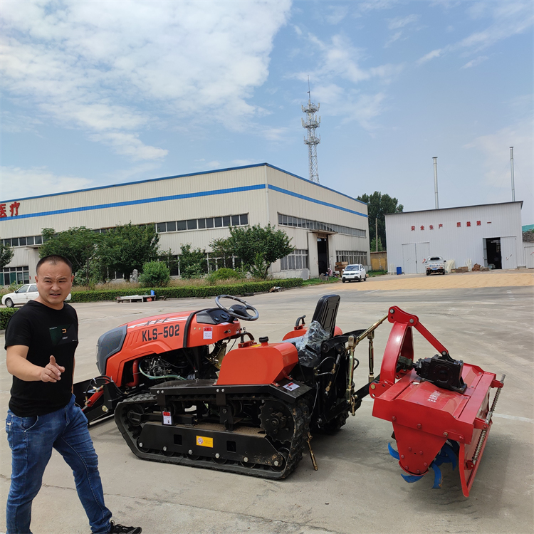 设计比轮式有更好的适应性,底盘低,稳定性好,履带附着系数大,可以有效抵抗倾斜和下坡的坡地。履带旋耕机属于全地形作业机械,具有原地转弯转向的机动性,爬坡和越野性能更强。