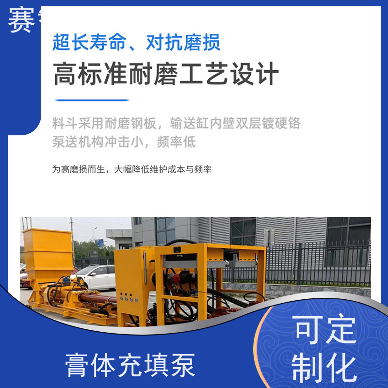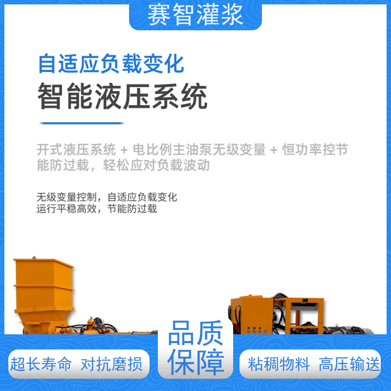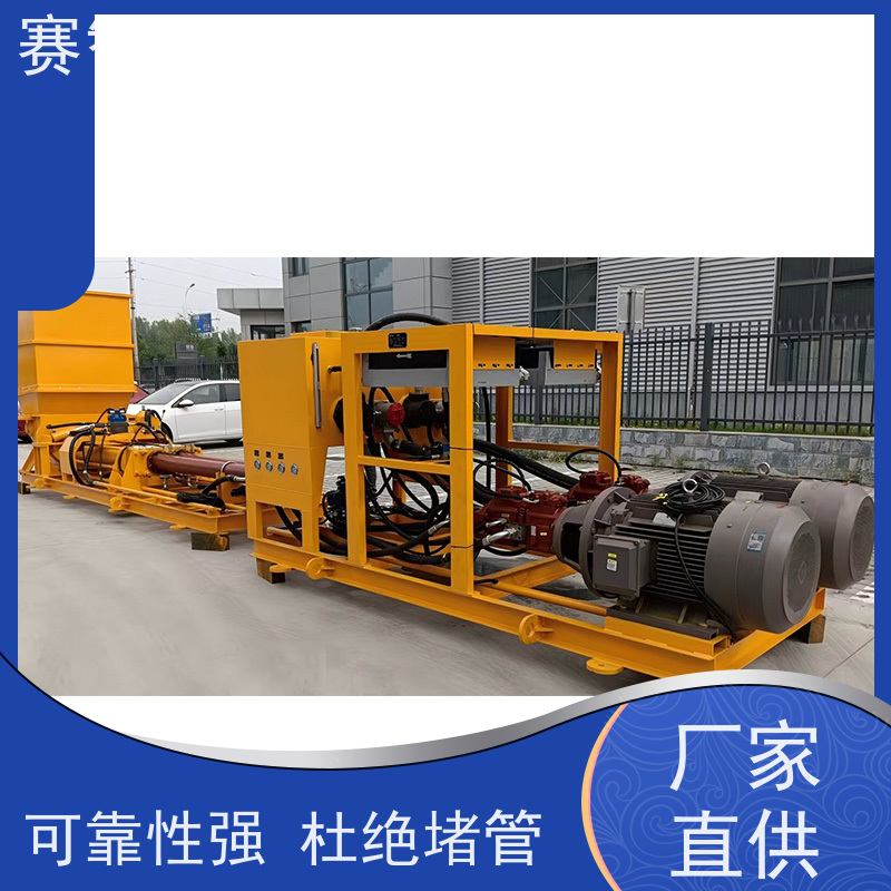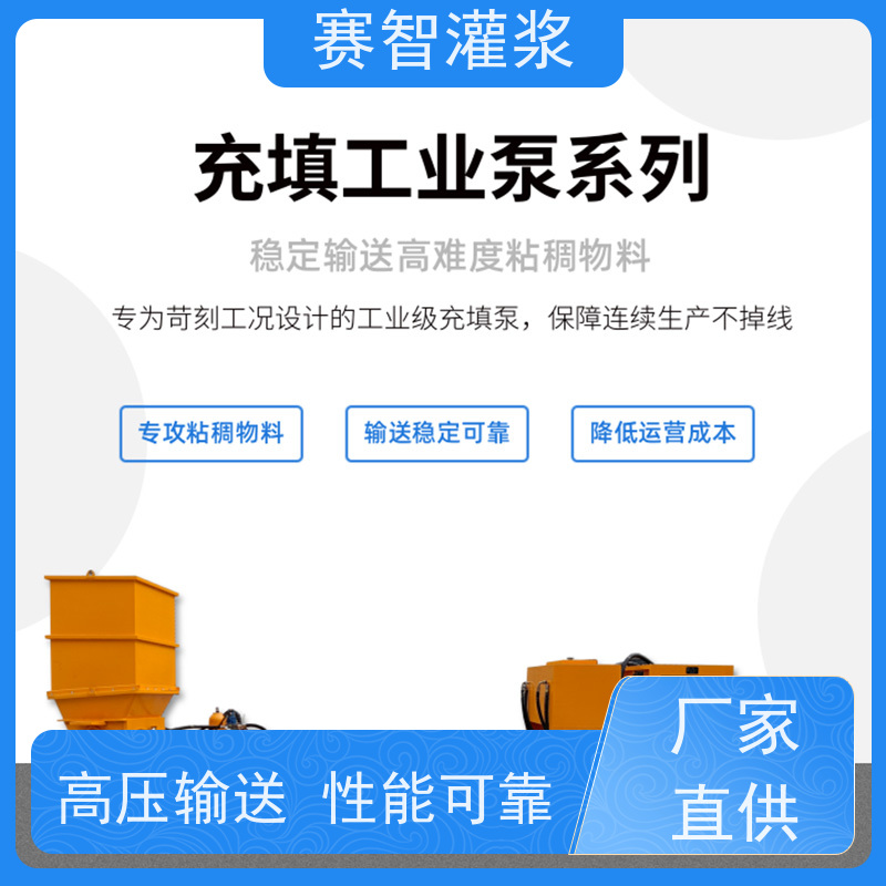 赛智灌浆固废膏体充填泵输送系统采用双电机动力配置,这一设计带来了诸多显著优势。双电机提供了更强劲的动力输出,能够轻松应对高浓度、高粘度的固废膏体输送任务。在矿山充填作业中,对于含有大量固体废弃物的膏体,传统单电机泵可能会出现动力不足、输送效率低下的问题。而赛智的双电机系统则能确保膏体在管道中顺畅流动,大大提高了充填速度和质量。