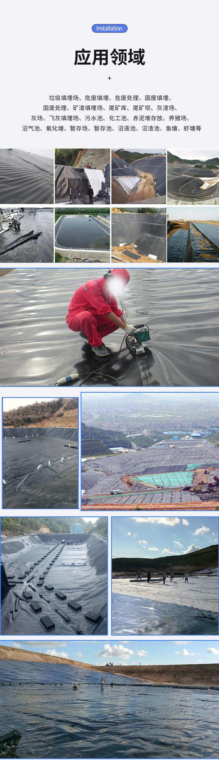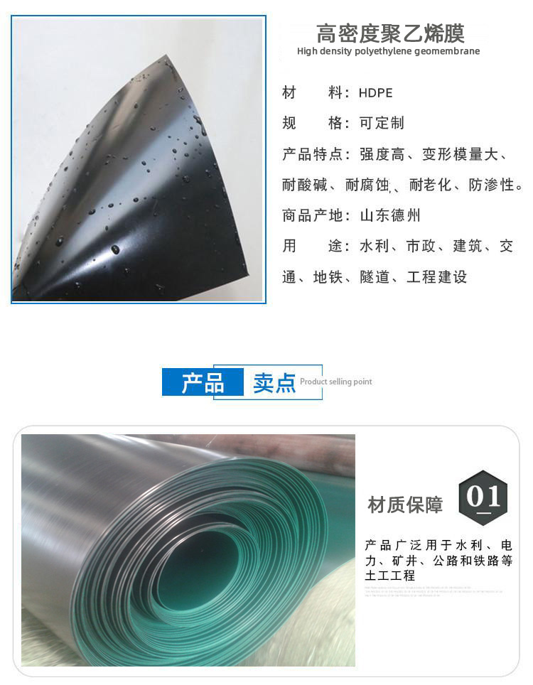 又称1.0毫米厚高密度聚乙烯土工膜,防渗膜,光面HDPE土工膜,糙面HDPE土工膜;