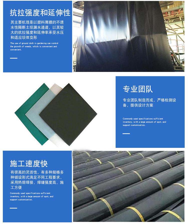 2、1.5mm防水层PE膜防渗性能好:高密度聚乙烯膜采用优良的高密度聚乙烯原生树脂,采用共挤技术制成,具有高效分子密度,液体渗透性极低,,防渗透效果较佳。