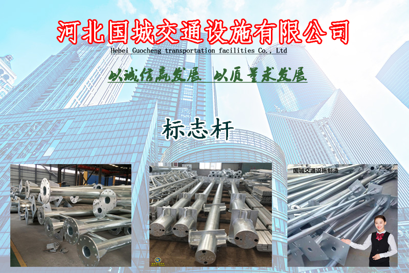 道路交通标志杆的分类。交通标志杆柱式一般有单柱式交通标志杆、多柱式交通标志杆。单柱式交通标志杆是标志板安装在一根立柱上,适用于中、小型尺寸的警告、禁令、指示标志和小型指路标志。多柱式交通标志杆是标志板安装在两根及两根以上立柱上,是适用于长方形的指示或指路标志。