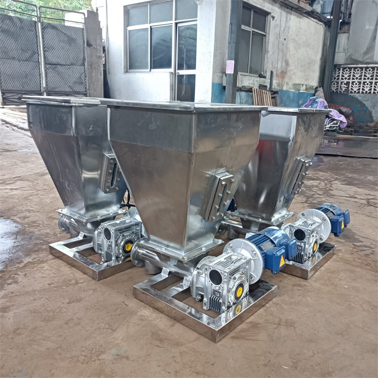 1、料仓,容积从1L到1000L不等,可以圆形也可以方形;可敞口也可以加盖,设置密封;料仓容积较大时,一般要加减重锥,防止料仓内物料重量压在螺旋轴上,导致负荷加大影响正常运行。