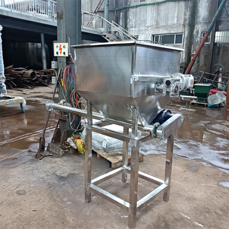 1、料仓,容积从1L到1000L不等,可以圆形也可以方形;可敞口也可以加盖,设置密封;料仓容积较大时,一般要加减重锥,防止料仓内物料重量压在螺旋轴上,导致负荷加大影响正常运行。