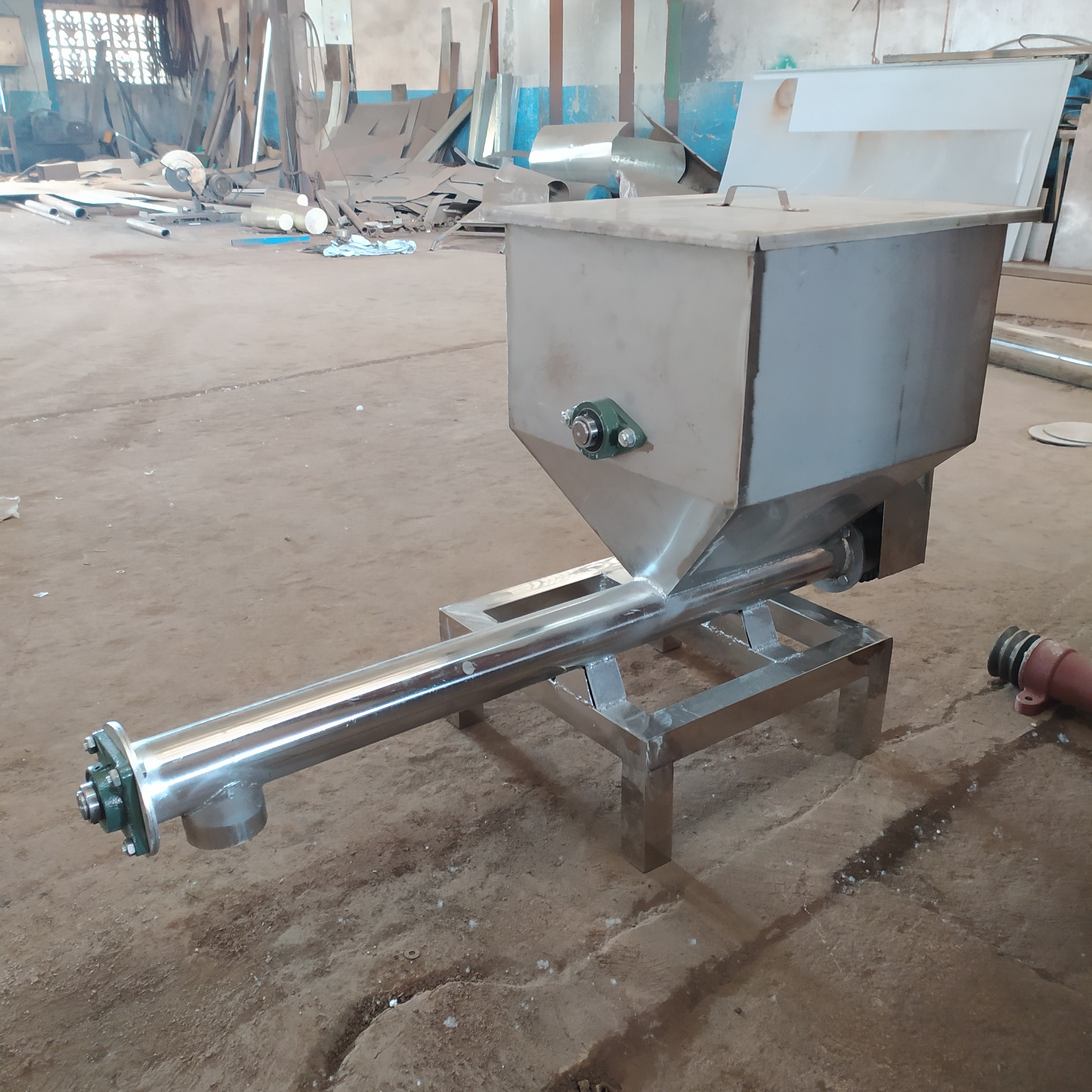 1、料仓,容积从1L到1000L不等,可以圆形也可以方形;可敞口也可以加盖,设置密封;料仓容积较大时,一般要加减重锥,防止料仓内物料重量压在螺旋轴上,导致负荷加大影响正常运行。
