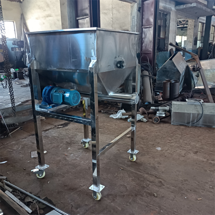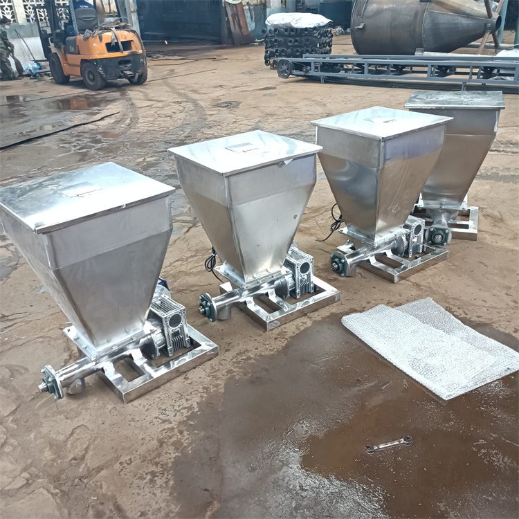 1、料仓,容积从1L到1000L不等,可以圆形也可以方形;可敞口也可以加盖,设置密封;料仓容积较大时,一般要加减重锥,防止料仓内物料重量压在螺旋轴上,导致负荷加大影响正常运行。