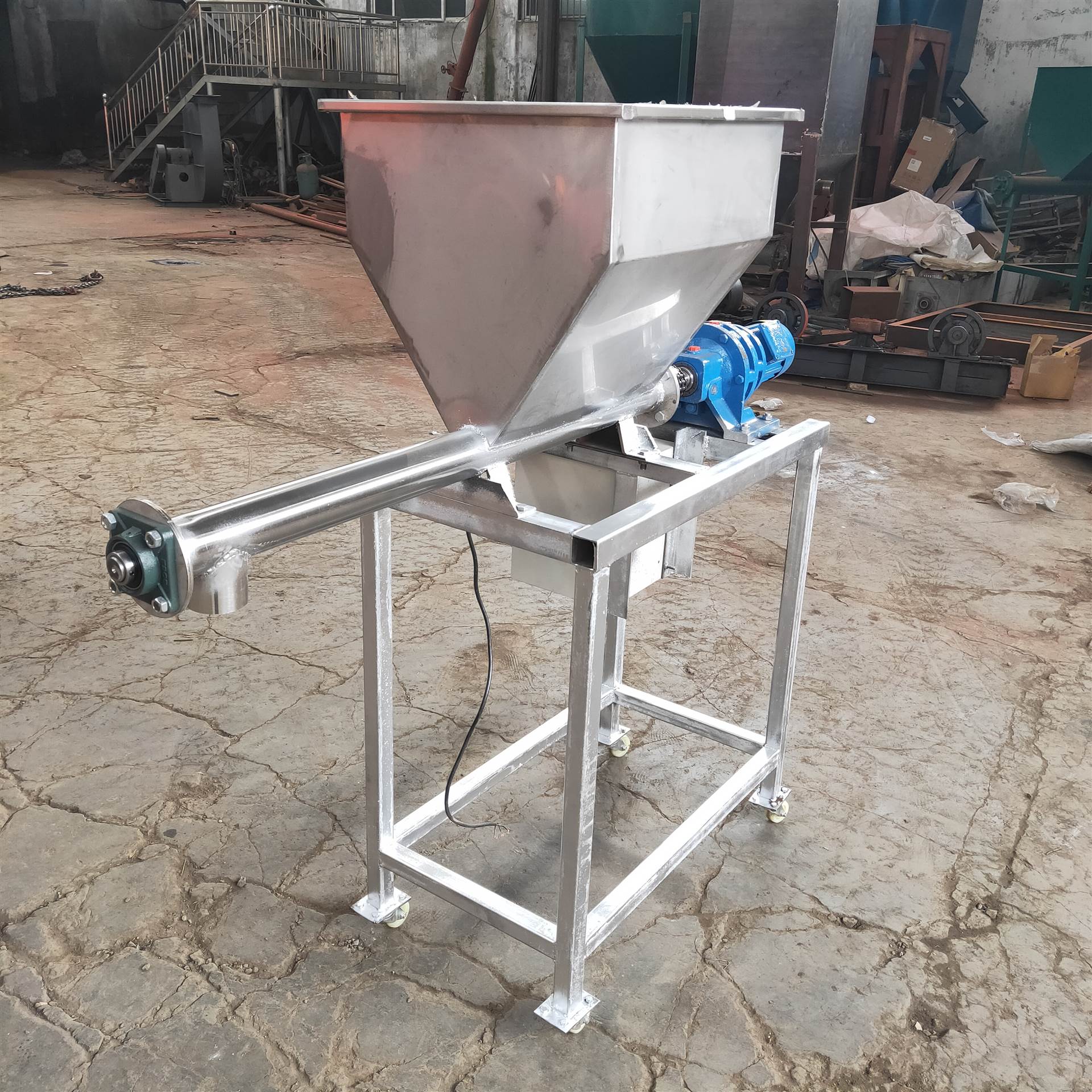 螺旋喂料机也叫螺旋给料机、螺旋输送机与刮板输送机、斗式输送机等同属输送设备。具有输送效率高,工作安全可靠,结构简单,功能完备、密封性好、噪音小和外形美观等特点。被广泛使用在各种工业部门,如建材、电力、化工、冶金、煤炭、铝镁、机械、轻工、粮食及食品行业。