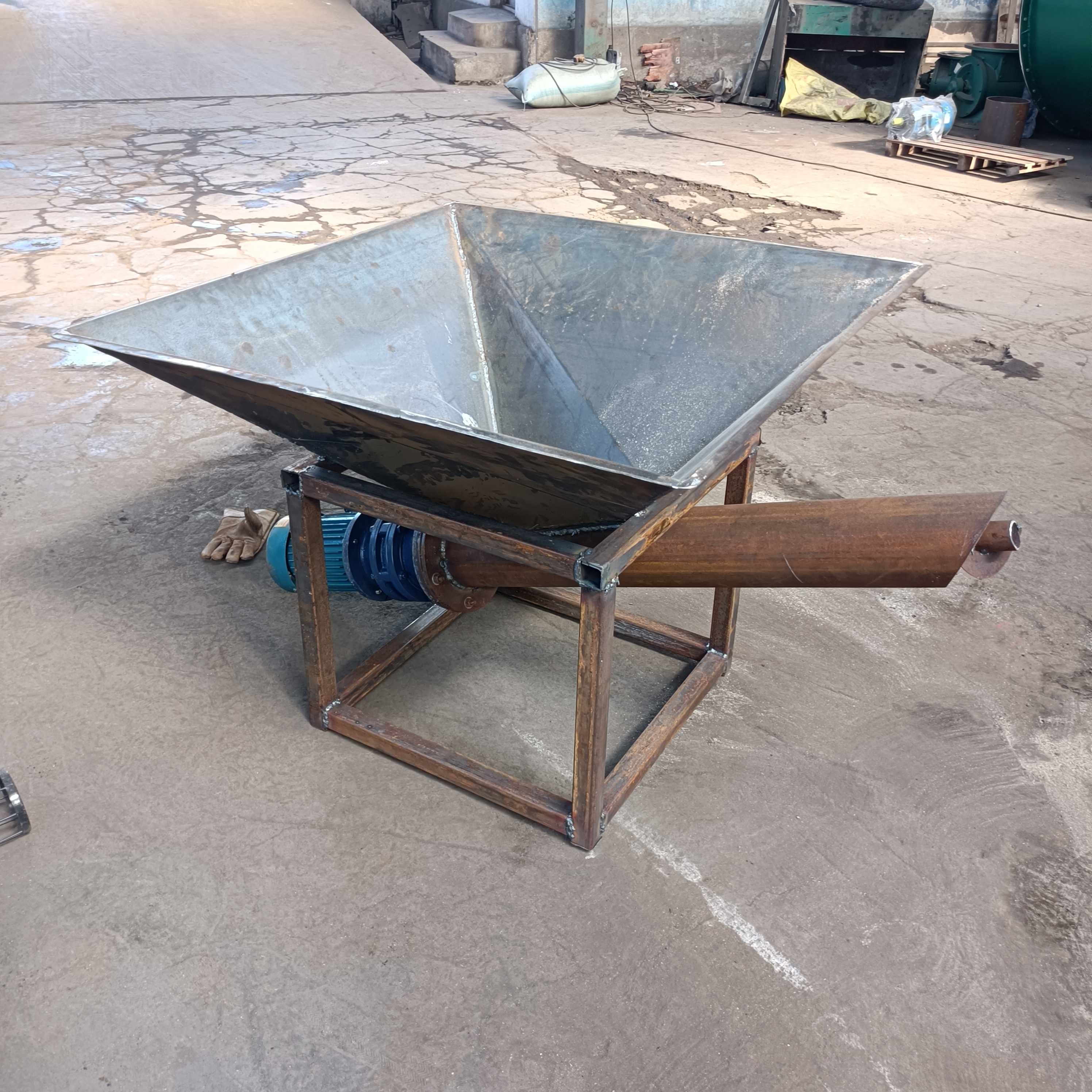 1、料仓,容积从1L到1000L不等,可以圆形也可以方形;可敞口也可以加盖,设置密封;料仓容积较大时,一般要加减重锥,防止料仓内物料重量压在螺旋轴上,导致负荷加大影响正常运行。