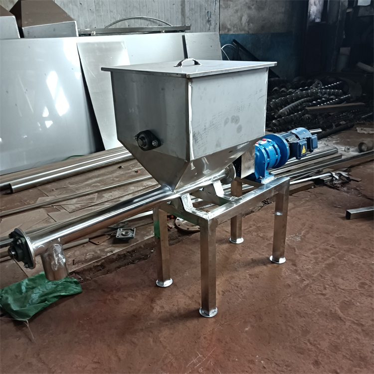 1、料仓,容积从1L到1000L不等,可以圆形也可以方形;可敞口也可以加盖,设置密封;料仓容积较大时,一般要加减重锥,防止料仓内物料重量压在螺旋轴上,导致负荷加大影响正常运行。