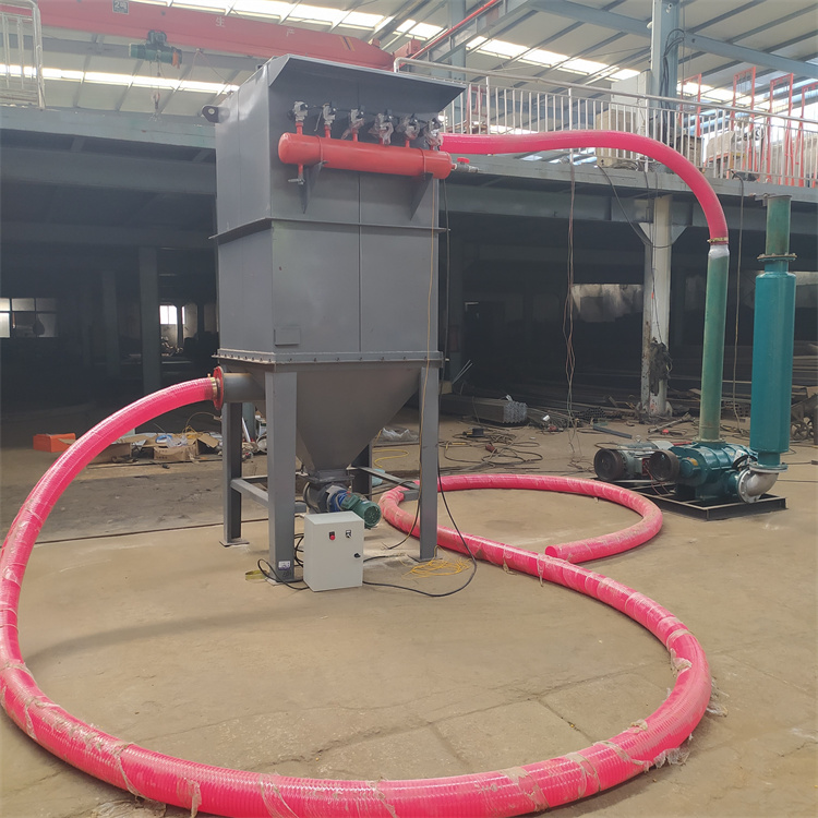 6、管道。先将消声管和钢管同风机相连(部分机型,脉冲罐上也需要钢管),然后将一根较短的软管将风机钢管和脉冲罐顶(或罐侧)弯管连接,后安装进、出料软管。