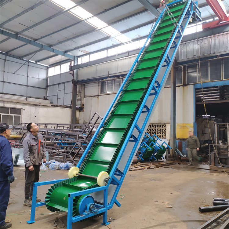 挡边皮带输送机可移动式爬坡皮带运输机,大倾角挡边输送机倾角等基本参数外,还决定于波状挡边输送带的型式及横隔板型式,带宽:100mm-2000mm,化工等领域物料输送,沙子到化肥和粮食等。
