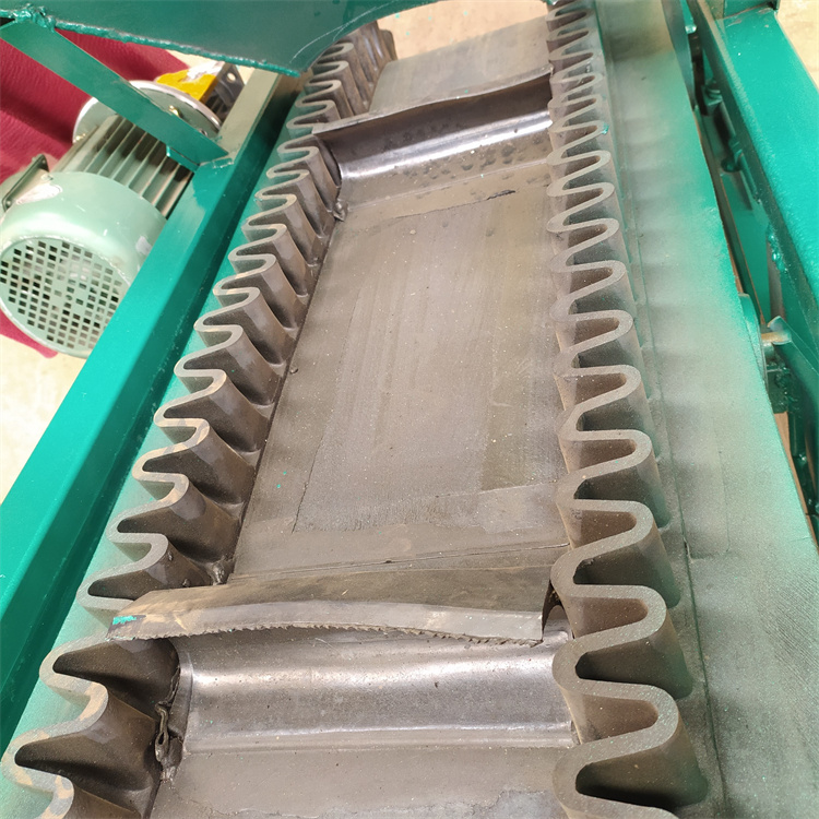 挡边皮带输送机可移动式爬坡皮带运输机,大倾角挡边输送机倾角等基本参数外,还决定于波状挡边输送带的型式及横隔板型式,带宽:100mm-2000mm,化工等领域物料输送,沙子到化肥和粮食等。