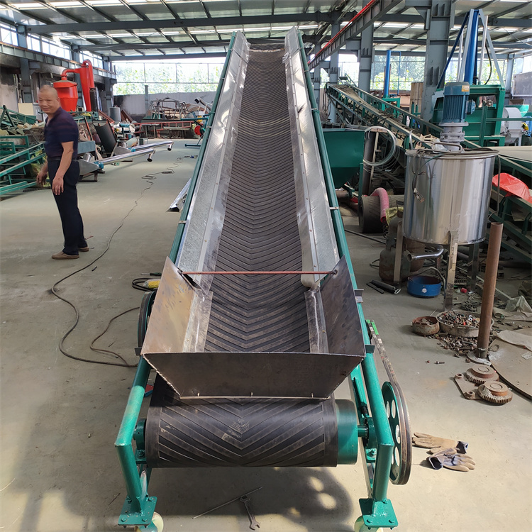 挡边皮带输送机可移动式爬坡皮带运输机,大倾角挡边输送机倾角等基本参数外,还决定于波状挡边输送带的型式及横隔板型式,带宽:100mm-2000mm,化工等领域物料输送,沙子到化肥和粮食等。