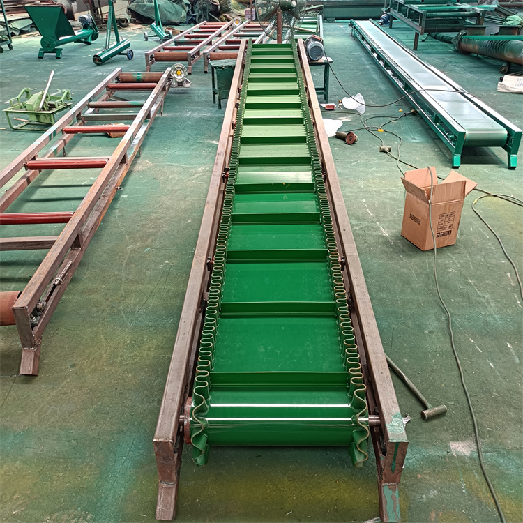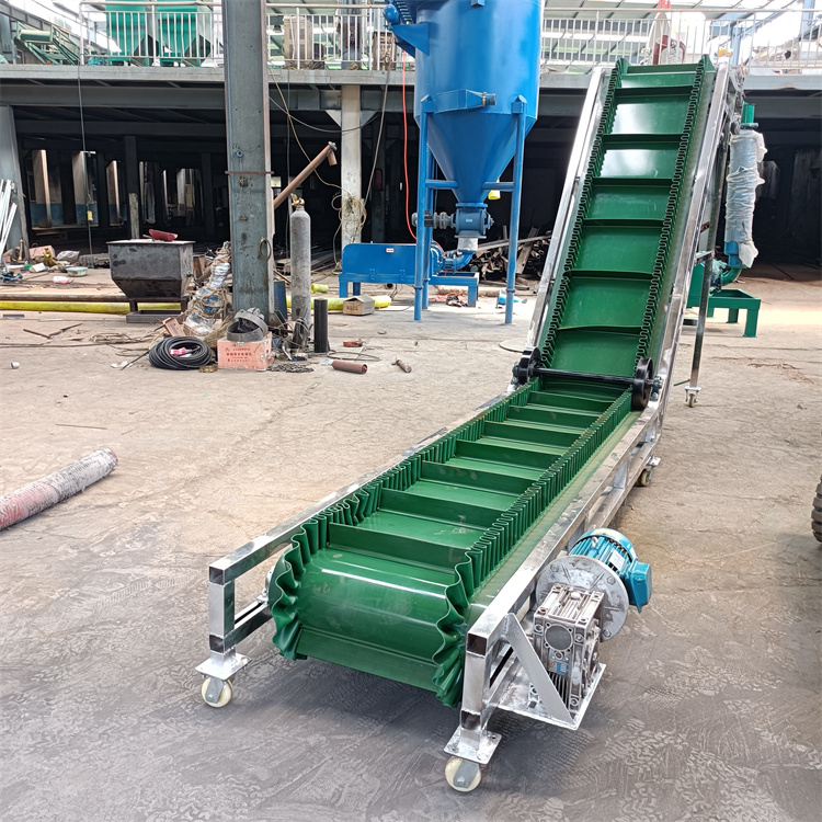 挡边皮带输送机可移动式爬坡皮带运输机,大倾角挡边输送机倾角等基本参数外,还决定于波状挡边输送带的型式及横隔板型式,带宽:100mm-2000mm,化工等领域物料输送,沙子到化肥和粮食等。