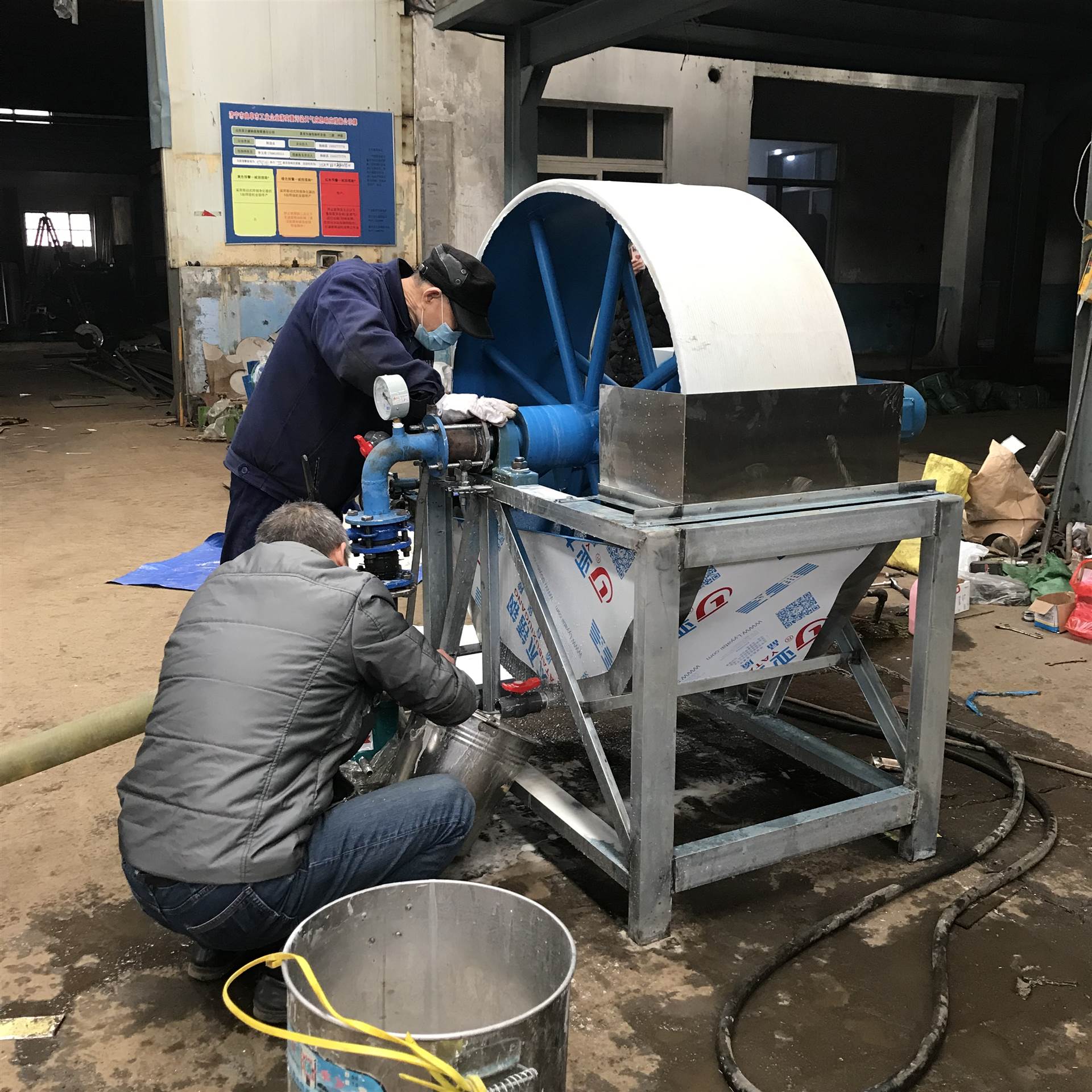 3.开动物料泵向脱水机槽内打淀粉液体,一般液体保持在物料槽的1/2就可;
