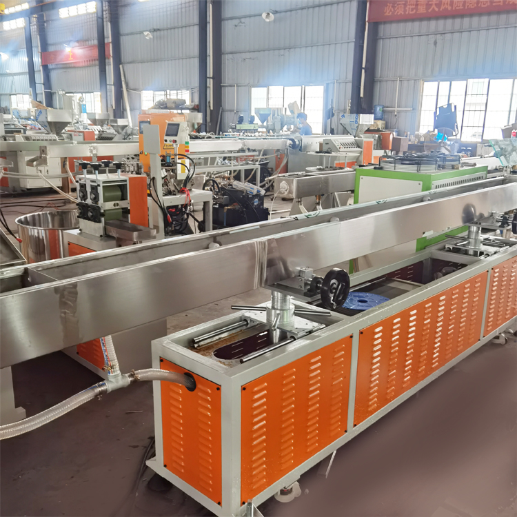 塑料管材生产线配置:主机及控制柜组(大小按需配置)、定制机头模具、真空箱(按需配置,大小定制)、冷却水槽(长短定制)、牵引机(牵引方式有轮式牵引、皮带牵引、履带牵引)、切断机(有刀片或刀片式电脑定长切断机、圆锯片或砂轮、行星切割机)、收卷机(或堆放架,收卷有单工位收卷、双工位收卷等)