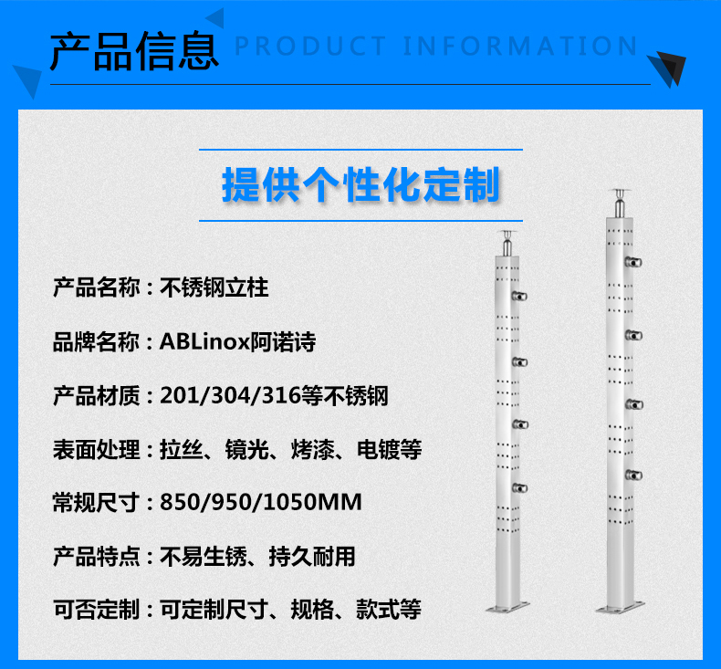 定制304不锈钢楼梯扶手立柱玻璃栏杆桥梁槽钢化玻璃201工程立柱