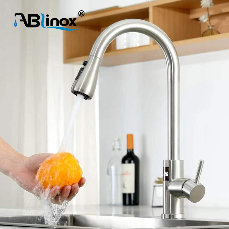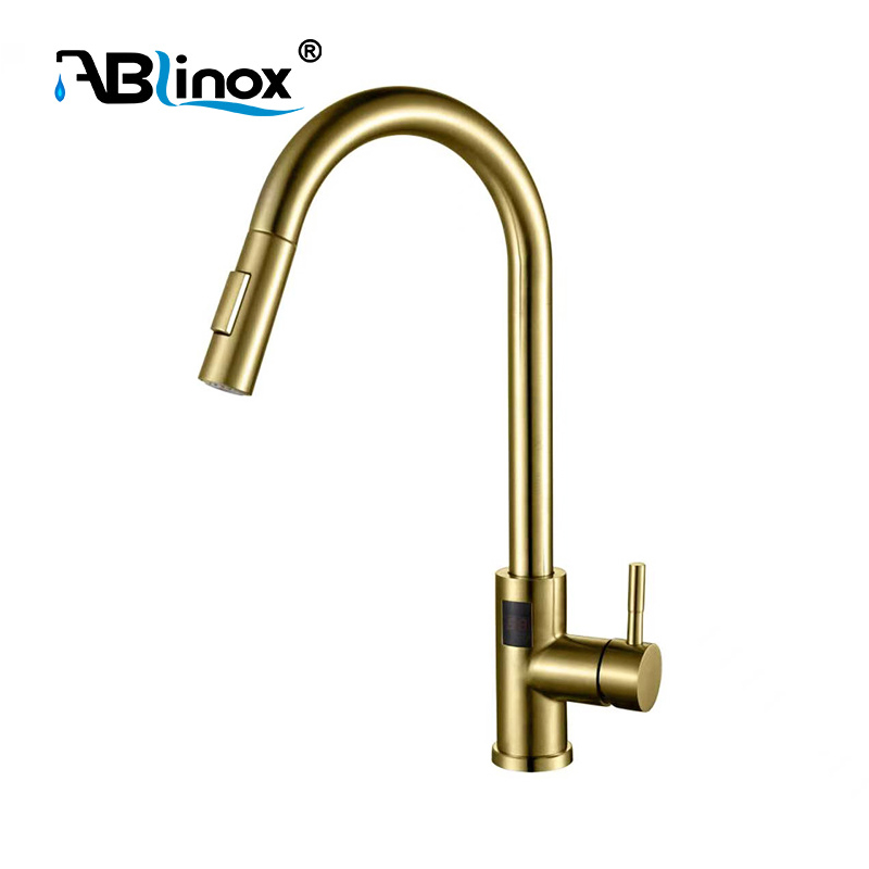 阿诺诗 304不锈钢水力发电数显抽拉水龙头 厨房龙头 厂家供应
