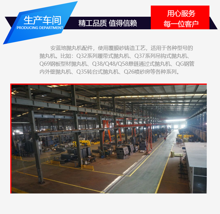 本公司生产制造各类型抛丸机,型号规格齐全,各类型配件都可加工定制,欢迎新老客户前来咨询和洽谈业务。