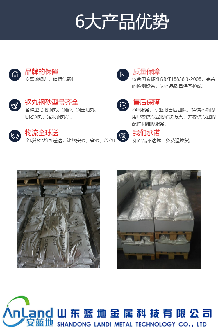 安蓝地钢丸具有硬度适中、韧性强、抗冲击、寿命长、反弹性好、清理速度快等特点 。