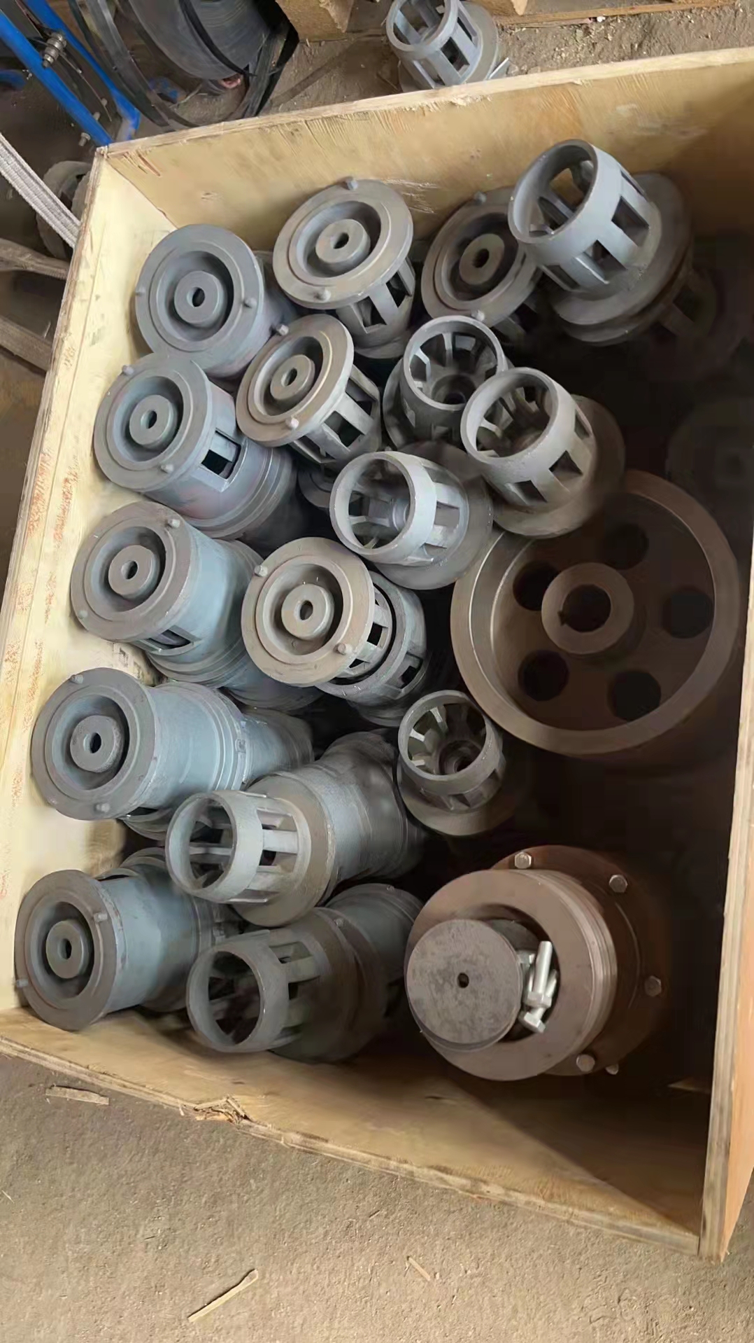 耐磨件的材质高猛钢和高中铬铸铁。我们还可以根据用户要求,生产各种非标耐蚀、耐热、耐磨铸件。以Q034抛头为例介绍抛丸机配件 。抛丸机配件抛丸器q034,又叫抛丸机抛头,抛丸器总成。抛丸机配件抛丸器q034规格型号根据功率有7.5kw、11kw、15kw、18kw、22kw等。抛丸机配件抛丸器q034主要组成部件:叶片、叶轮、定向套、分丸轮、护板等。抛丸器:抛丸器中的双圆盘铆接成一体,构成叶轮体,叶轮体上装有8片叶片,叶轮体与位于抛丸轮中心的分丸轮一起装在由电动机驱动的主轴上。罩内衬有护板,罩壳上装有定向套及进丸管。工作时,弹丸由进丸管流入抛丸器。跟叶片作同步旋转的分丸轮使弹丸得到初速度。弹丸经定向套的窗口飞出,抛到定向套外面的高速旋转的叶片上,被叶片进一步加速后,抛射到被清理工件的表面上。因为分丸轮和叶片作同步旋转保证了弹丸向叶片的无振动传递,从而减小了对叶片的磨损。在抛丸器工作运转前要检查叶片磨损情况,当叶片出现磨损应及时更换,叶片要成对更换,同一组叶片两两质量差不大于5克,否则抛丸机运转过程会出现振动或者异响,造成其他配件的损坏,严重着损坏电机。