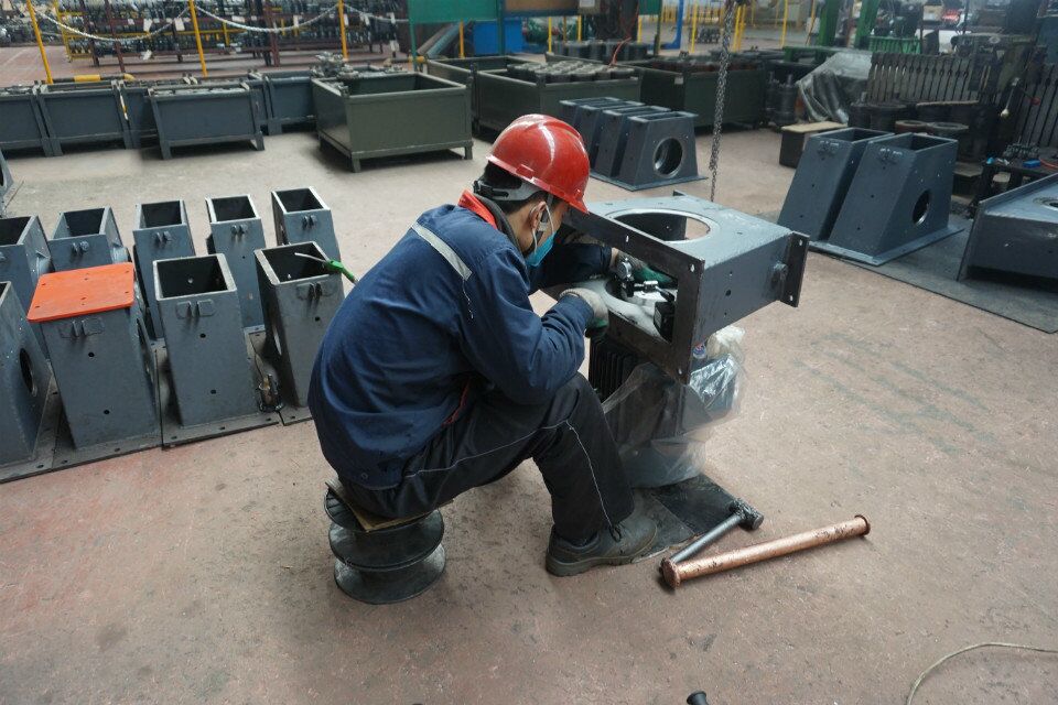 为保证运转的稳定性,叶片更换必需成双成对的进行,即与不合要求的叶片相对的叶片必需同时换掉,以获得良好的动平衡。如果叶片问题导致抛头工作不正常,就把所有叶片全部换掉,有铸造缺陷的叶片坚决不必,注意装置叶片时1组8个叶片重量差不得大于5克。
