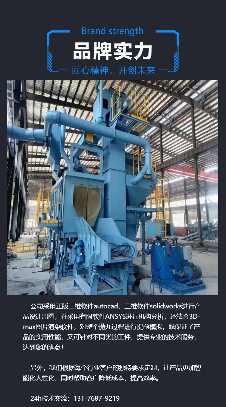安蓝地免振壳抛丸清理机的特点1.清理室护板为锰钢护板;设备密封性好不漏丸,不漏灰;清理效率高,适用范围广。 2.抛头装有高耐磨合金护板,含铬量高,耐磨性好,统一标准,随意更换。3.电机:采用铜芯电机,噪音少,更稳定。4.焊接牢固,用心选材,匠心工艺,焊缝光滑且结实。 5.我们的百句夸赞不如您的一个称赞,我们用质量说话,用事实说话。