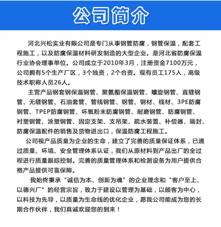 防腐钢管通常规格(包括厚度和钢号)的变化不超过4种,否则在管理上会增加很多麻烦;(1)防腐钢管所选择的壁厚,在任何条件下,不得小于由于运输、装卸、安装等环节所需要的小壁厚。这一小壁厚是根据刚性要求确定的,在各国的设计规范中均有明确规定;3pe防腐钢管是管道(钢管)在不同的工作环境中使用,为减缓或防止管道在外介质的化学、电化学作用下或由微生物的代谢活动而被侵蚀和变质在其外壁上涂2层或3层聚乙烯(3PE)以达到管道防腐,3pe防腐管使用寿命延长3-5倍。