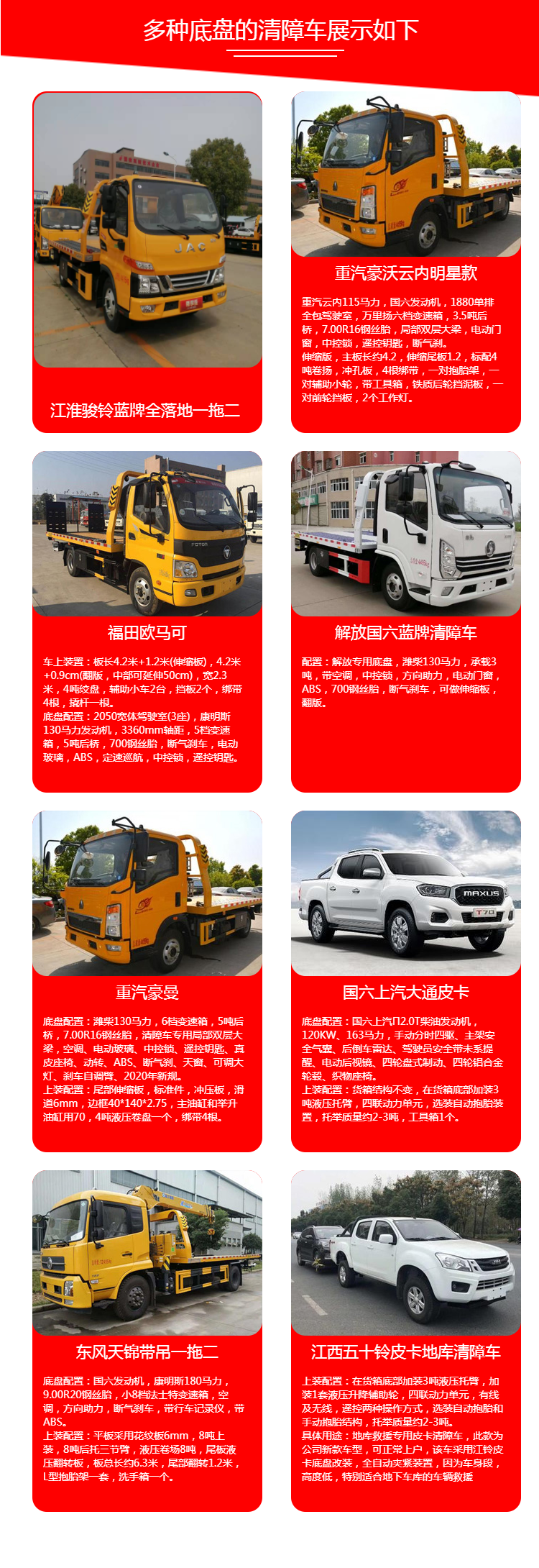 江淮骏铃蓝牌清障车 一拖二清障车 修理厂 4S店 拖车