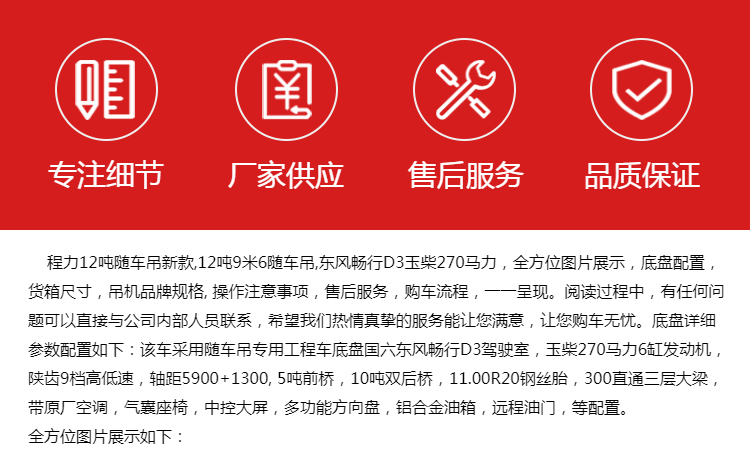 程力12吨随车吊新款 12吨9米6随车吊 东风畅行D3玉柴270马力可吊大型集装箱